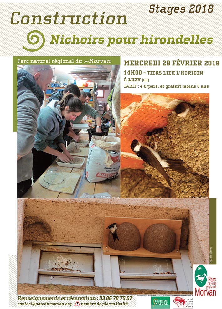 La Parc naturel régional du Morvan accompagné de la Société d'Histoire Naturelle d'Autun seront au Tiers-lieu de l'Horizon le 28 février entre 14h30 et 17h pour un atelier de fabrication de nichoir à hirondelle.