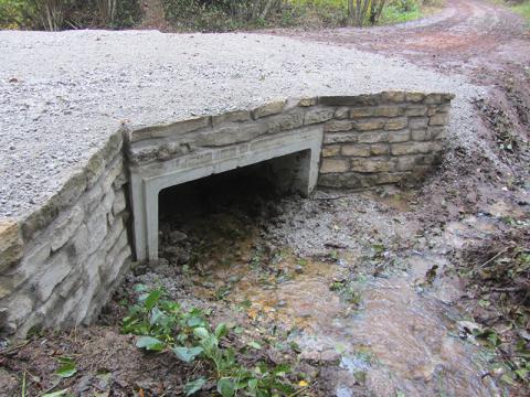 Installation d’un dalot au-dessus du ruisseau pour permettre son franchissement et restaurer la continuité écologique (©PNRM)