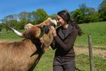 Camille (en rouge sur les photos) a représenté Marion Baranton et Jérôme Boulanger, de la ferme de Couveau à Larochemillay. Elle a reçu leur 2e prix de la catégorie "Pâturage prioritaire" au concours national, remis par Philippe Gamen, Vice-président de la Fédération des PNR de France et président du PNR du Massif des Bauges (à sa droite), et Bérangère Abba, Secrétaire d'État auprès de la ministre de la Transition écologique, chargée de la Biodiversité (à sa gauche).