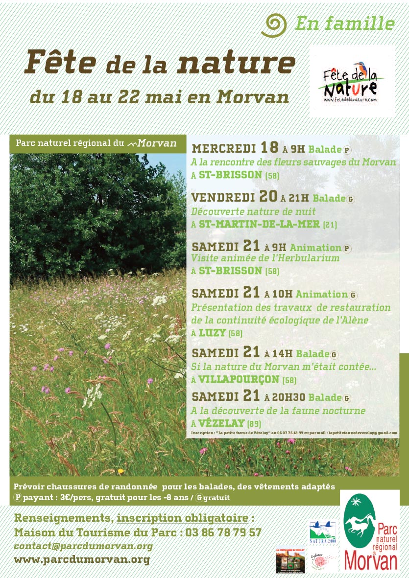 Dans le cadre de la Fête de la Nature, le Parc naturel régional du Morvan propose plusieurs animations et balades nature gratuites (voir sur affiche dessous).