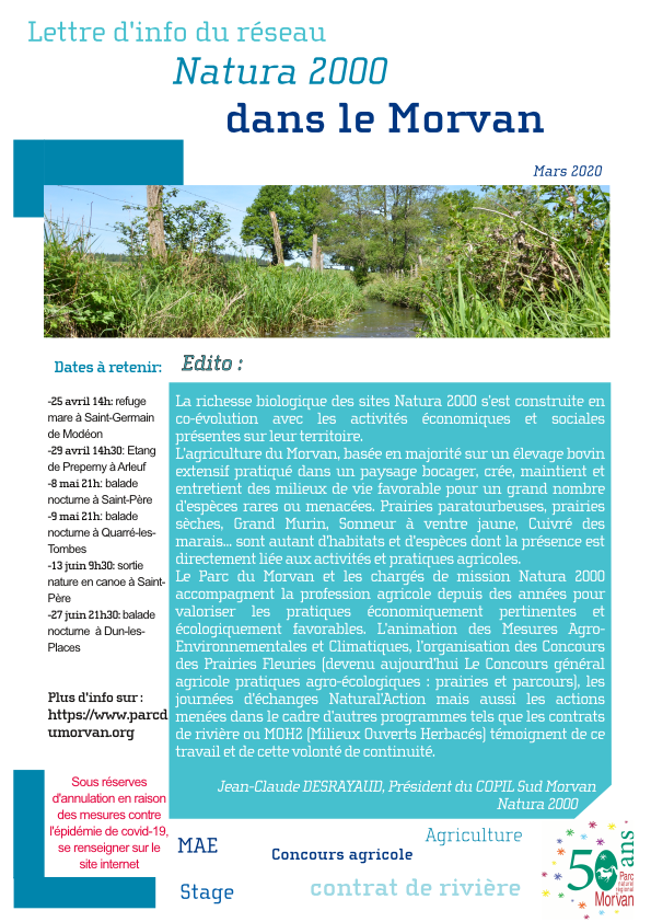 Nous sommes heureux de vous présenter la lettre d'info de mars 2020 du réseau Natura 2000 en Morvan.