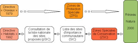 Ces deux directives comportent chacune deux volets : l’un consacré à la protection des espèces, sur tout le territoire des Etats de l’Union ; l’autre visant à créer un réseau de sites, appelé réseau Natura 2000, dans lequel la préservation des habitats et des espèces sera assurée.